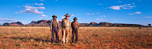 Charlie Egalie Tjapaltjarri, Geoff Bardon and Mick Namarari Tjapaltjarri, Mt Leibig, Northern Territory - 16x10 inches (40.6x27cm) unframed