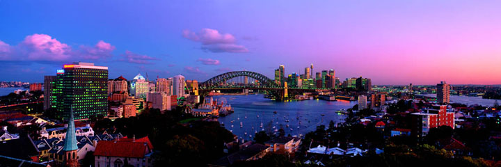 Painted in luminous pink, a normally vibrant Sydney Harbour is suddenly muted